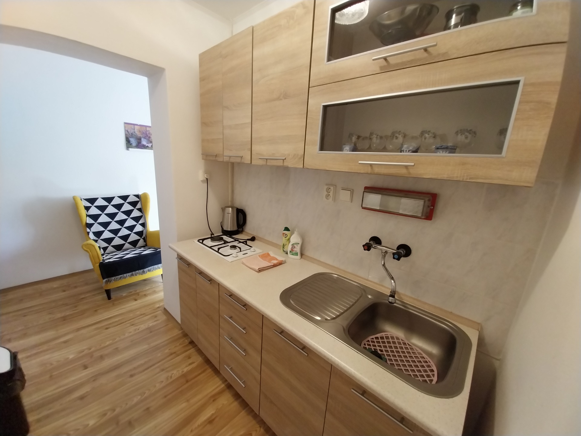 Apartmán je součástí rodinného domu, má oddělený samostatný vchod. Ubytování disponuje plně vybavenou kuchyní a vlastní koupelnou se sprchovým koutem. V hlavní místnosti jsou k dispozici dvě samostatné postele a rozkládací gauč. Parkování možné ve dvoře. Ideální a klidné ubytování pro páry, rodiny s dětmi i skupiny přátel.